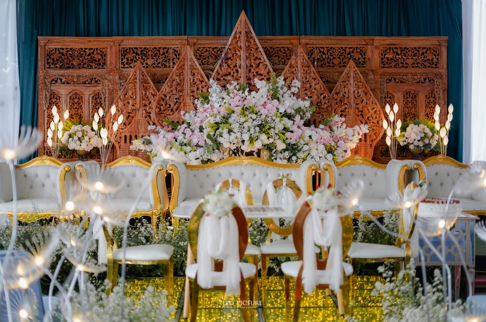Kami menghadirkan dekorasi pelaminan dengan konsep gebyok khas Jawa yang kental akan nuansa tradisional, dipadukan dengan sentuhan modern agar tetap terlihat mewah dan berkelas. Setiap detail kami perhatikan dengan cermat, mulai dari ukiran gebyok, rangkaian bunga, pilihan warna, hingga tata pencahayaan untuk menciptakan suasana hangat, sakral, dan berkesan.