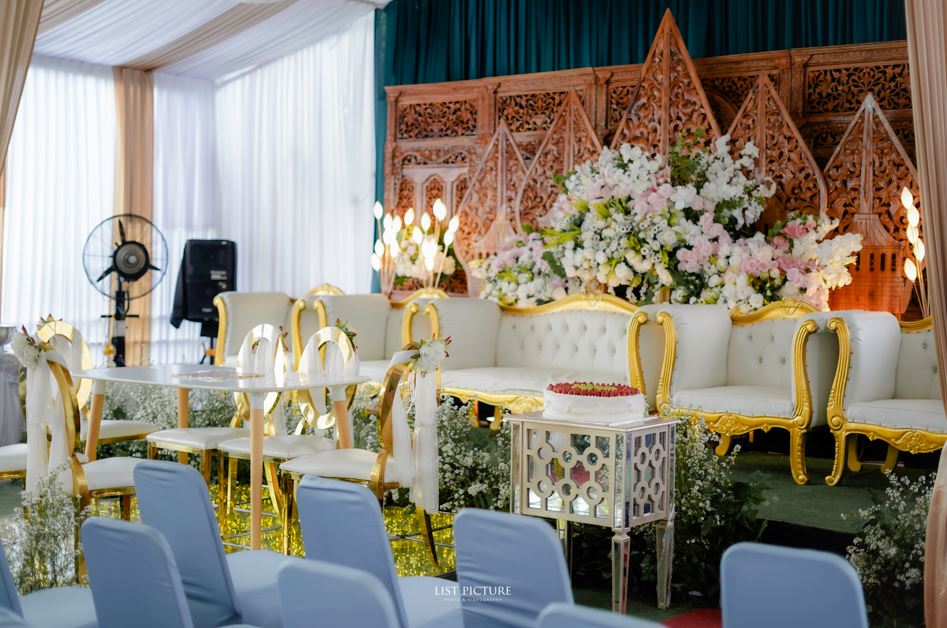 Rayakan momen sakral Anda dengan sentuhan dekorasi pelaminan gebyok Jawa tradisional yang elegan dan penuh makna dari Lanoer Wedding & Event Organizer.